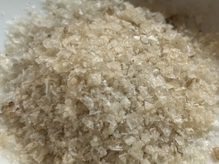 近づいて見てみると結晶が独特で例えが合ってるかわかりませんが削り節のような感じ。